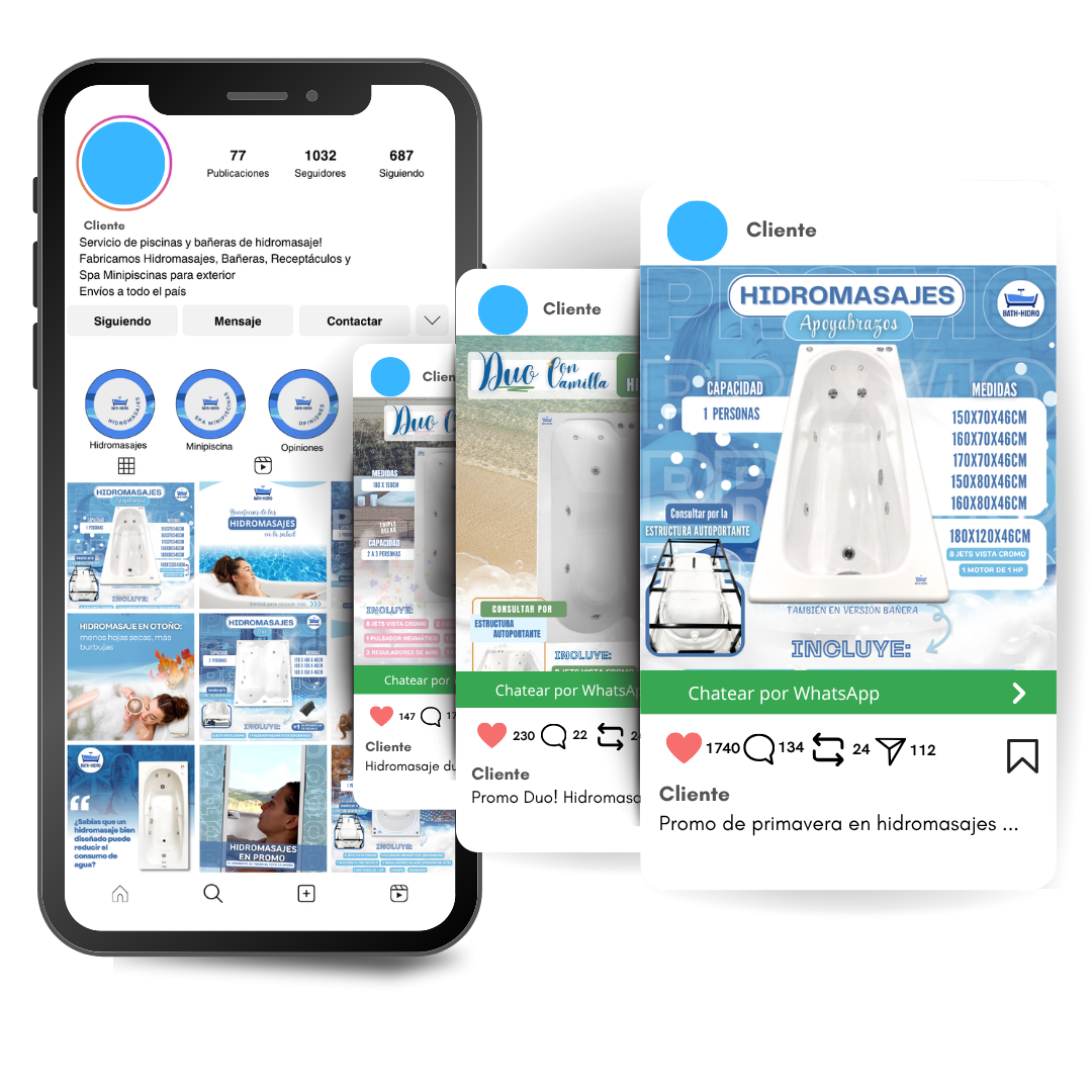 Cuando este cliente confió en Woosh, entendimos que no solo vendía bañeras, hidromasajes y minipisicinas: Vendía momentos de pausa, desconexión y tiempo de calidad. Para potenciar sus ventas online, creamos un ecosistema de performance: desde el manual de marca y la propuesta visual, hasta la configuración de campañas en Google y Meta Ads con landings optimizadas.